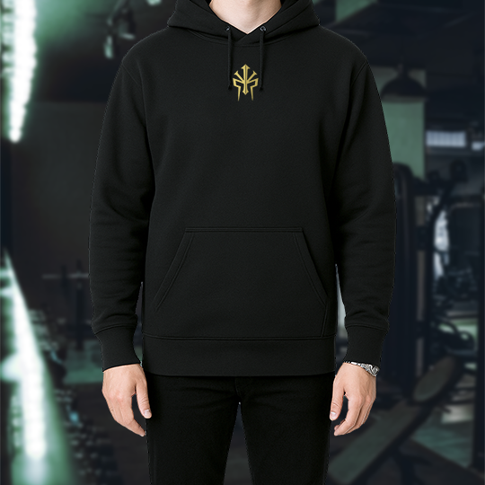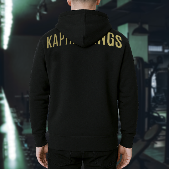 Polerón negro y dorado para entrenar